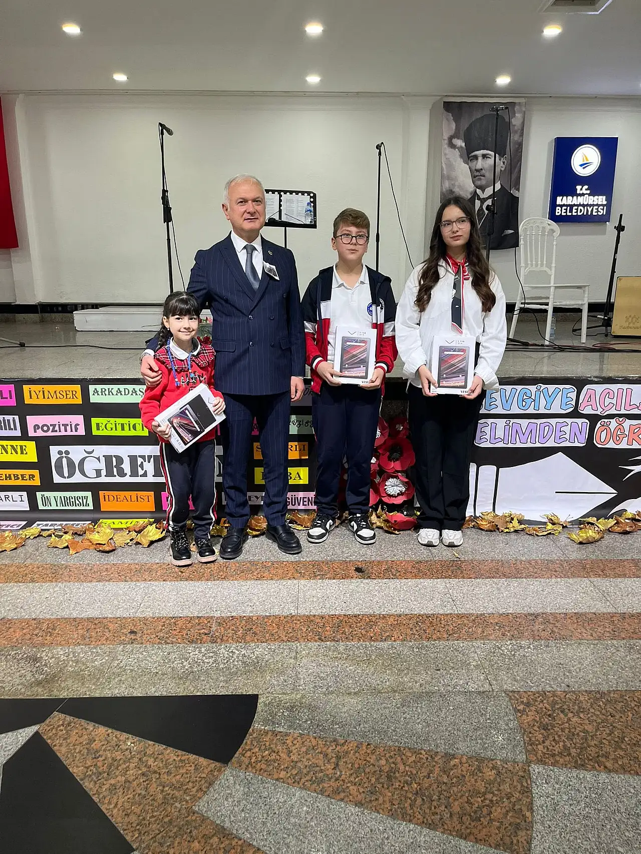 Kutlama programı kapsamında ilçe genelinde düzenlenen şiir, kompozisyon ve resim yarışmalarında dereceye giren öğrenciler de unutulmadı. Başarılı öğrencilere ödülleri; Karamürsel Kaymakamı Kemal İnan, Karamürsel Belediye Başkanı Ahmet Çalık ve İlçe Milli Eğitim Müdürü Erdinç Bozkurt tarafından takdim edildi.