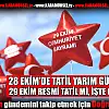 - 28 Ekim Salı günü, mesai saat 13.00’te sona erecek. Kamu kurumları ve okullarda öğleden sonra tatil başlayacak.