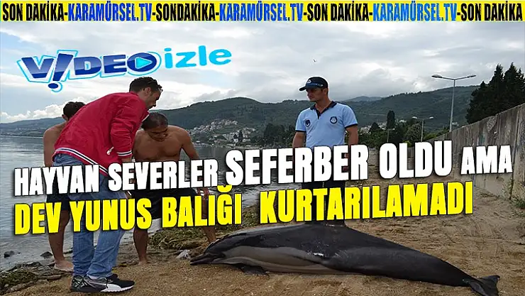 Duyarlı vatandaşlar tarafından güçlükle kıyıya çekilen yunus balığı olay yerine çağrılan Karamürsel Zabıtası ekiplerine teslim edildi.