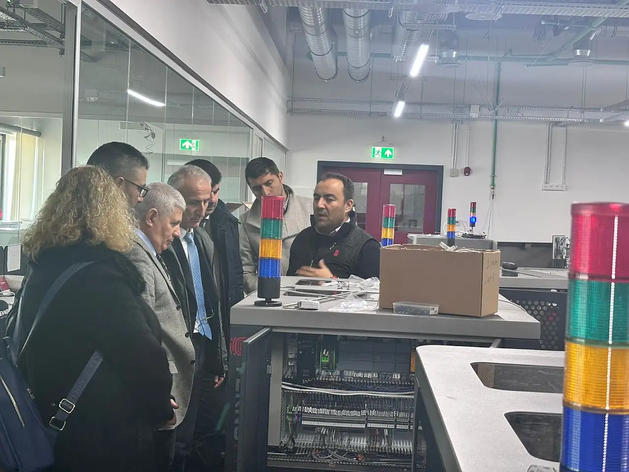 Kurulan bu yeni tesislerde öğrencilerin sadece teorik bilgiyle değil, sanayinin ihtiyaç duyduğu pratik donanımla mezun olmaları hedefleniyor. Fotoğraflara yansıyan görüntülerde, yetkililerin PLC otomasyon panoları, 3D üretim teknolojileri ve sinyalizasyon sistemleri hakkında teknik ekipten detaylı bilgi aldığı görüldü.