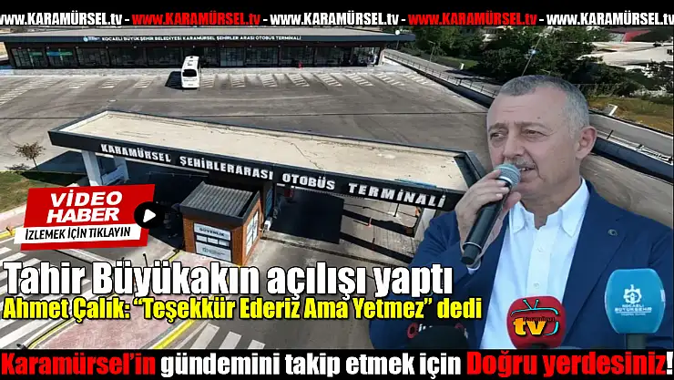 Törende ilk sözü alan Karamürsel Belediye Başkanı Ahmet Çalık, terminalin ilçe için önemli bir yatırım olduğunu belirterek Başkan Büyükakın'a teşekkür etti. Ancak sözlerini, "Teşekkür ederiz ama yetmez. Karamürsel'e çok daha fazla yatırım gerekiyor" diyerek tamamladı.