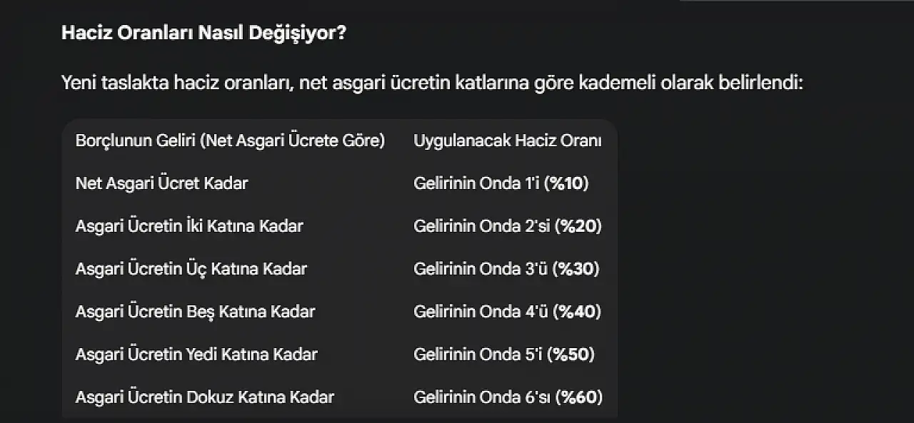 Yeni sistemin temel mantığı, borçlunun geliri üzerinden kademeli bir haciz oranı uygulamak. Bu değişiklikle birlikte, alacak tahsilat süreçlerinin hızlanması bekleniyor.