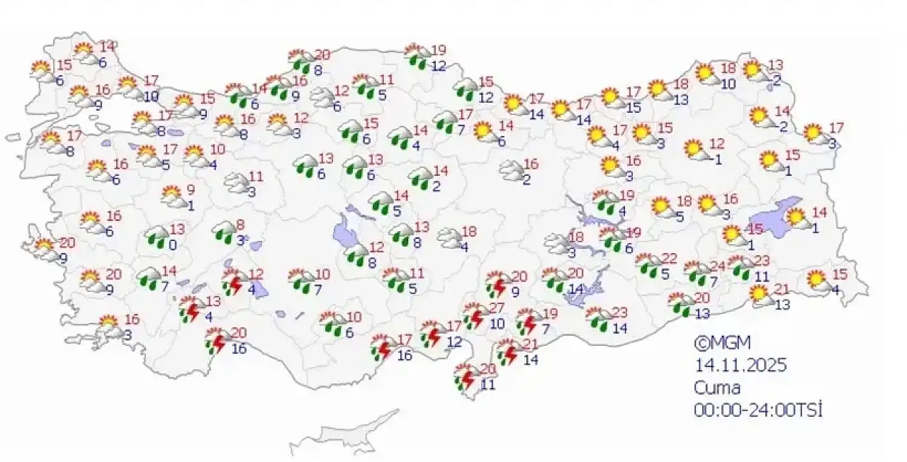 14 Kasım Cuma: Yağışlı