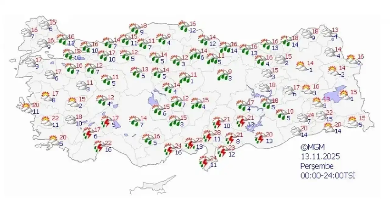 13 Kasım Perşembe: Yağışlı