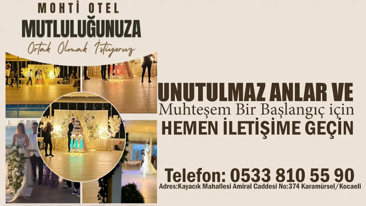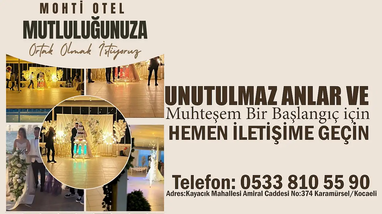 Karamürsel'in en prestijli mekanlarından Mohti Otel, unutulmaz anılarınıza ev sahipliği yapmaya 2026 yılında da devam ediyor. Havuz başında büyüleyici bir atmosferde, sevdiklerinizle birlikte hayallerinizdeki etkinliği gerçekleştirmeye hazır olun.