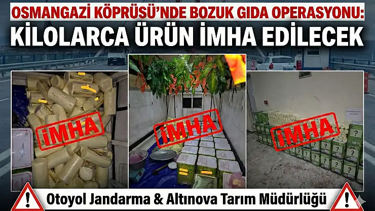 Vatandaşın "ucuz gıda" arayışını fırsat bilen gıda teröristlerine geçit verilmedi. Otoyol Jandarma Komutanlığı personelince Osmangazi Köprüsü geçişinde yapılan rutin yol kontrolleri sırasında şüphe üzerine durdurulan bir araç, gıda güvenliği açısından faciayı önledi. Araçta gıda maddeleri olduğunun tespit edilmesi üzerine durum, Altınova İlçe Tarım ve Orman Müdürlüğü ekiplerine bildirildi.