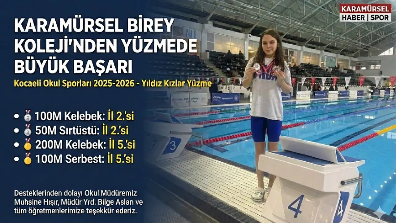 Kocaeli Okul Sporları 2025-2026 sezonu yüzme müsabakalarında Karamürsel Birey Koleji rüzgarı esti.
